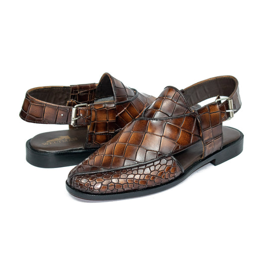 Pheonix Crocodile Mustard Two Tone Peshawari - Leather Sole