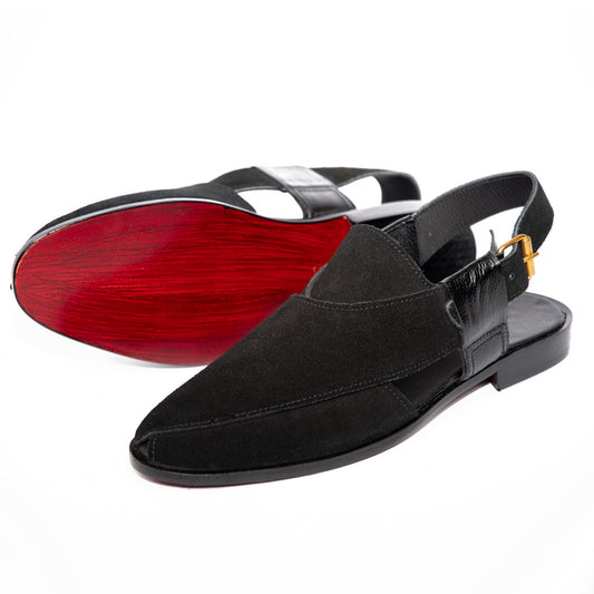 Black Suede Peshawari - Leather Sole