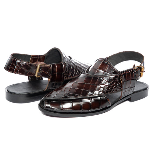 Crocodile Burgundy Two Tone Peshawari - Leather Sole